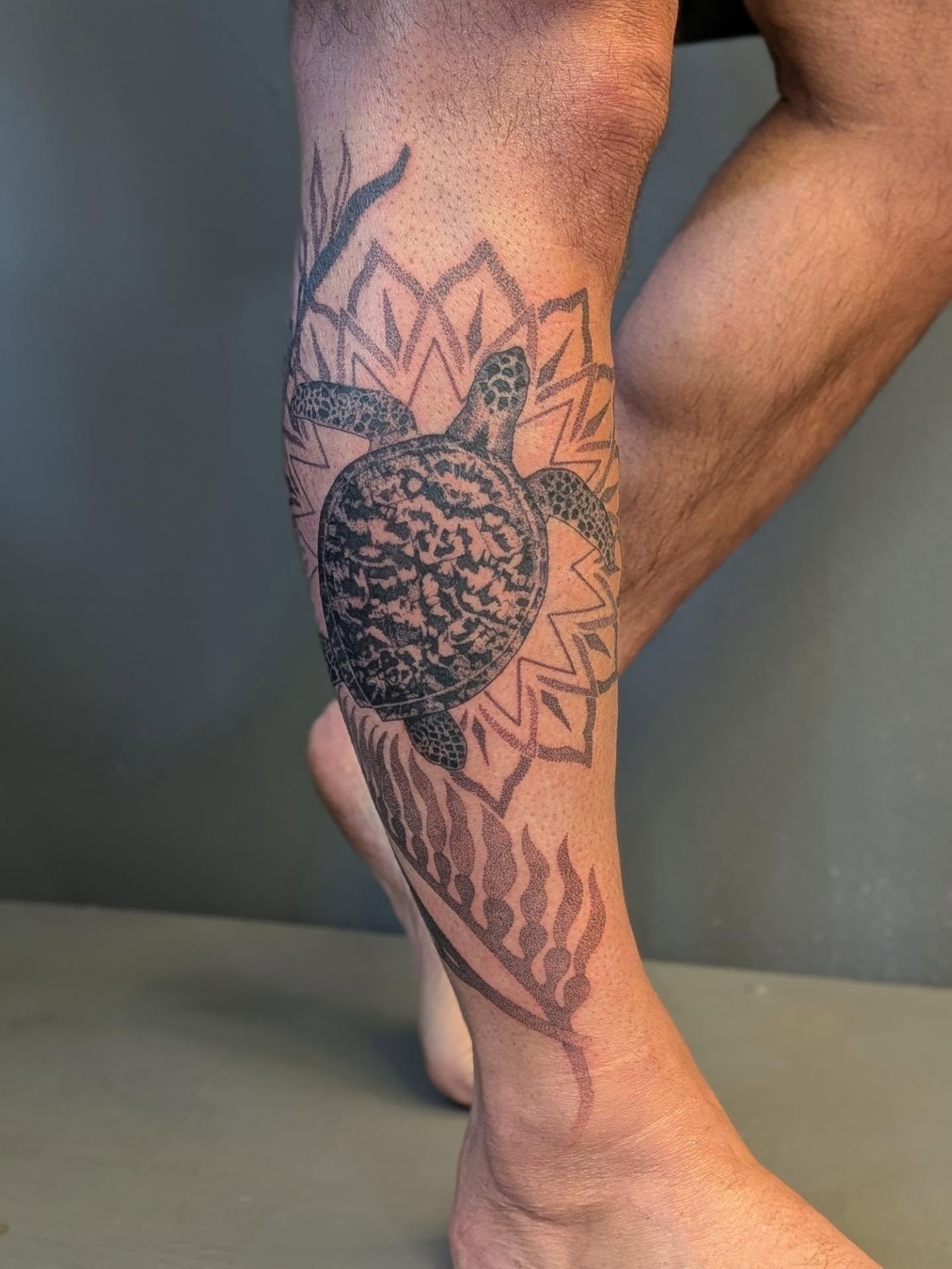 I draw inspiration from nature, incorporating florals, wildlife, and geometric elements into my designs. I specialize in tattoos sized to fit the body part of the person wearing it. I put a big emphasis on placement, flow, and anatomy, and have my own design process that allows me to work with my clients more closely to achieve their ideal body art.