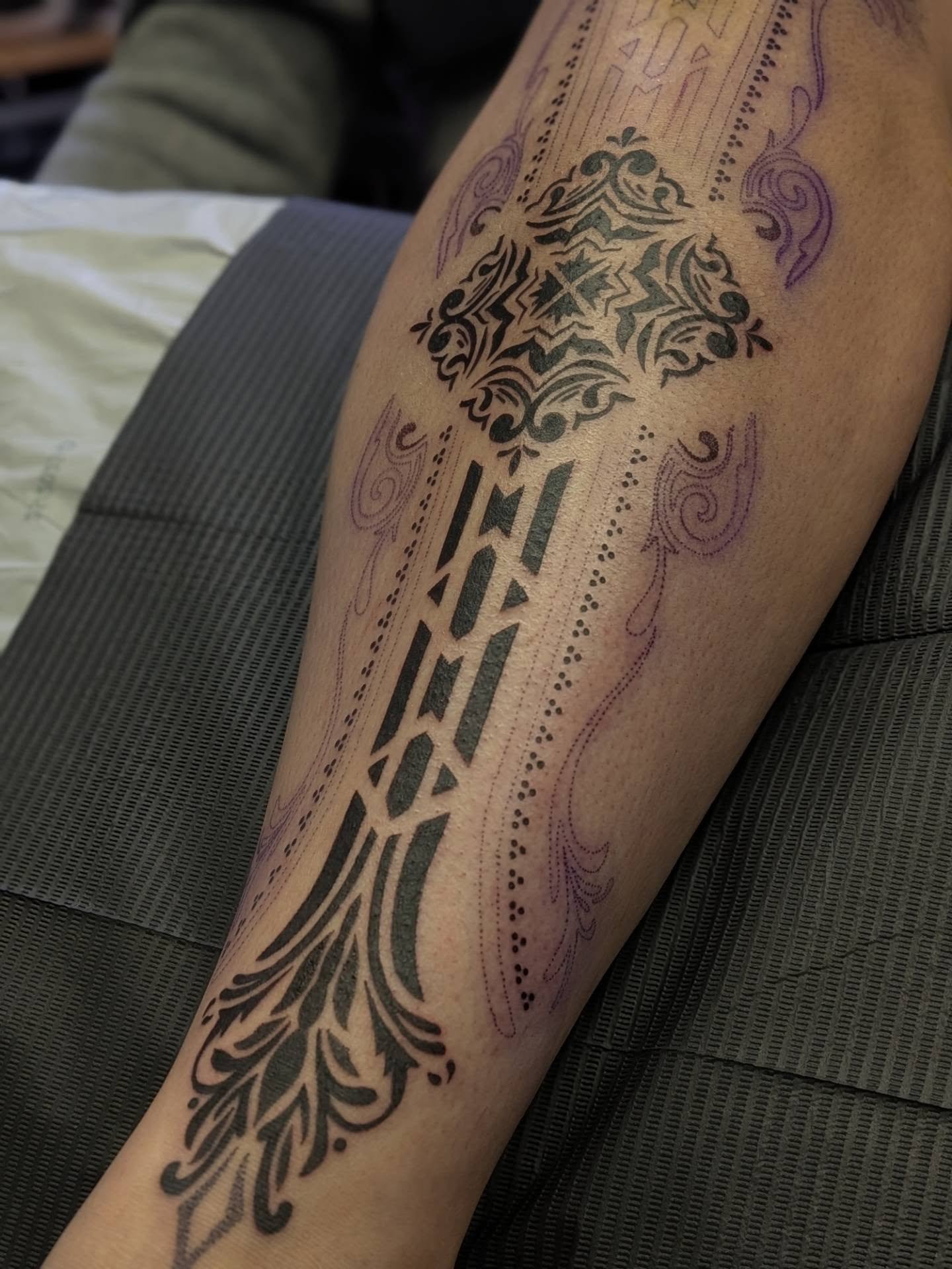 I draw inspiration from nature, incorporating florals, wildlife, and geometric elements into my designs. I specialize in tattoos sized to fit the body part of the person wearing it. I put a big emphasis on placement, flow, and anatomy, and have my own design process that allows me to work with my clients more closely to achieve their ideal body art.